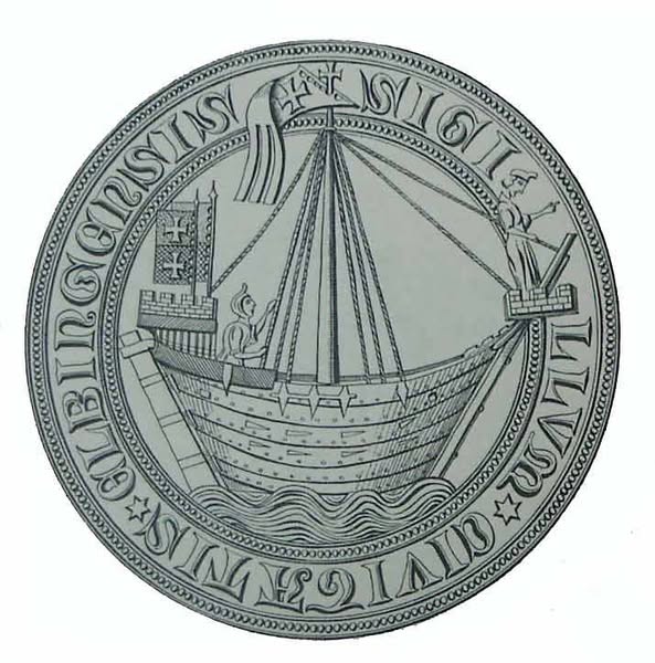 Pieczęć Elbląga z wyobrażeniem kogi z połowy XIV w.